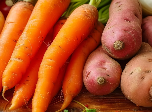 Carrots are a great low-calorie snack for dogs, packed with beta-carotene, which the body converts into vitamin A. Sweet potatoes are rich in vitamins like A, C, and B6, which promote immune function, skin health, and energy metabolism.